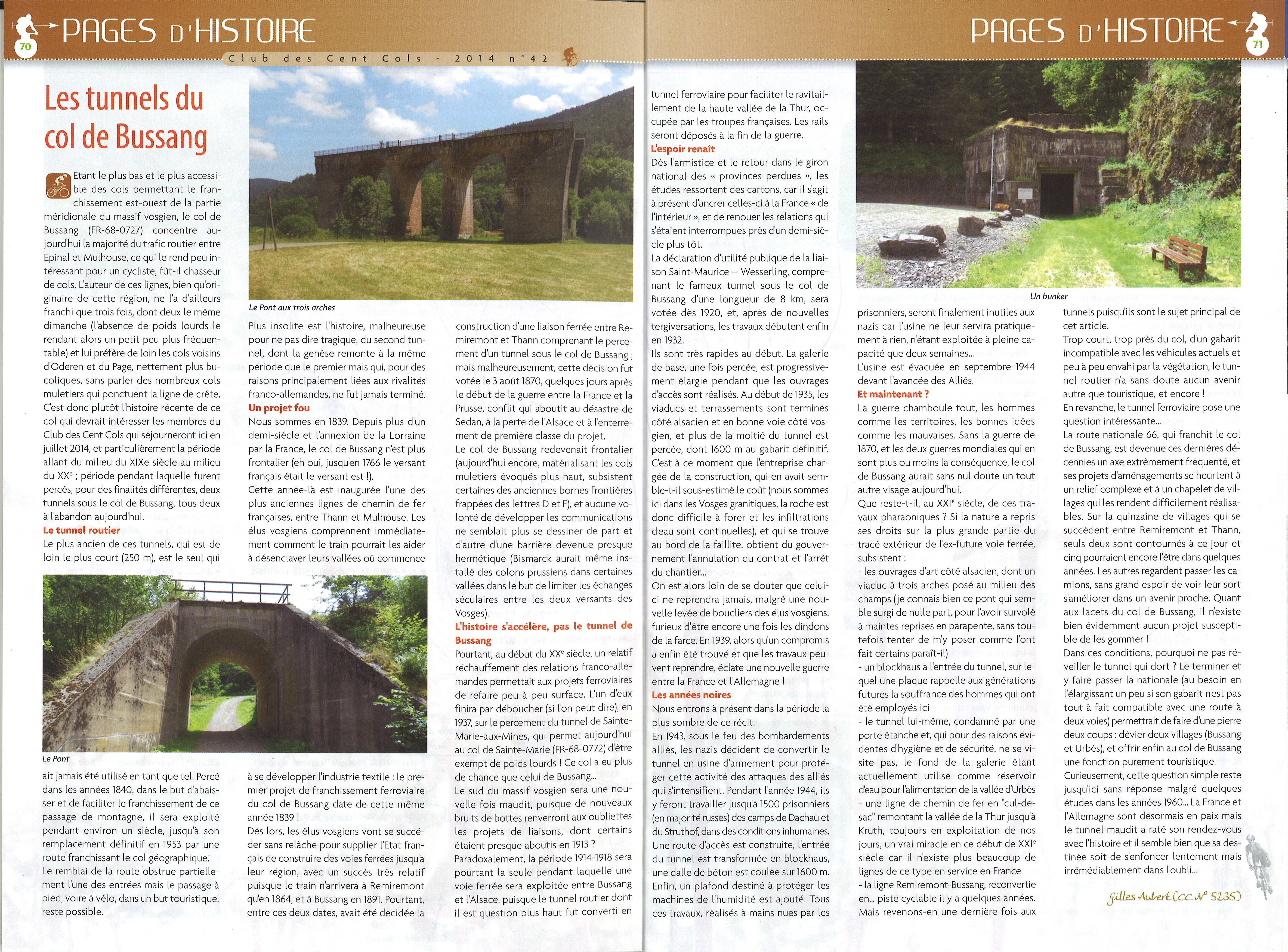 Télécharger l'image jpgArticle sur les tunnels de Bussang paru dans la revue des Cent Cols 2014 ; auteur : Gilles Aubert