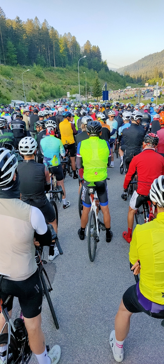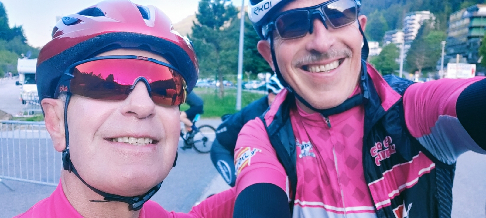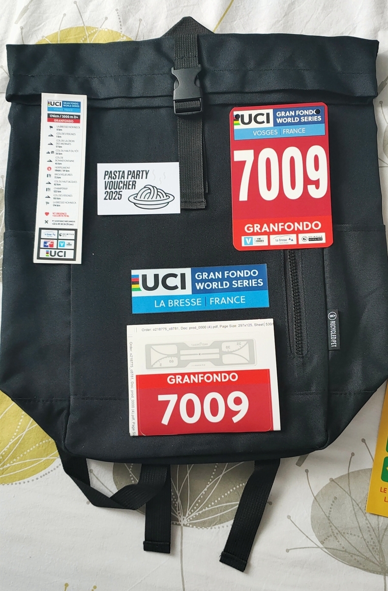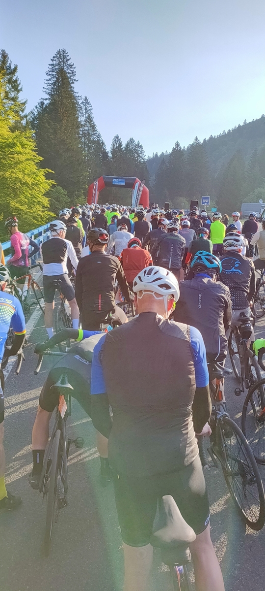 Le dimanche 18 mai, direction La Bresse « à bonne heure » pour la Granfondo Vosges, toujours les deux mêmes Francis et Mimi, engagés le grand parcours 175 km pour 2800 m de dénivelé. Grosse affluence cette fois, ça nous change, 1200 concurrents environ sur le grand parcours, 2500 en tout, et comme toujours ça roule très fort car la majorité des coureurs est étrangère et ils ne sont pas venus faire du tourisme, vu que cette épreuve est qualificative pour les championnats du monde de cyclosport en Australie. Comme on dit « toujours en prise », très peu de moments de répit durant la course, ils ne font que relancer tout le temps il ne faut pas rester à la traîne sinon tu te fais éjecter rapidos !!!!!