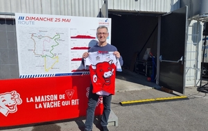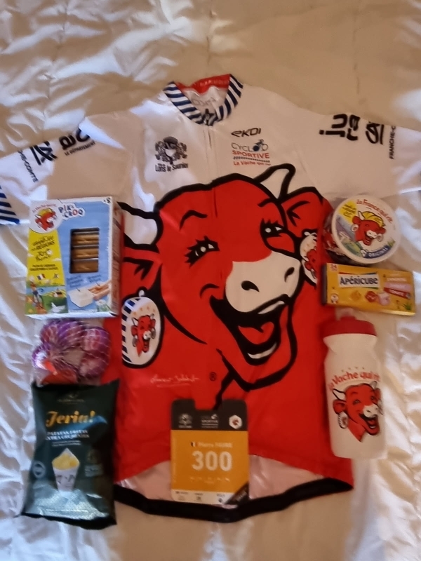 Et pour en finir avec les cyclos notre ami Pierrot tellement déçu de sa route verte ratée, s’est engagé sur La Vache Qui Rit à Lons le Saunier, il ne m’a pas encore dit s’il avait beaucoup ri pendant la course, en tout cas il a avalé les 156 km pour 2300 m de dénivelé en 5h43mn, et termine 617ème sur 1075 classés, bien mieux que les 6h qu’il visait au départ, bravo à lui, espérons qu’il nous ramène quelques portions de vache qui rit pour la prochaine réunion !