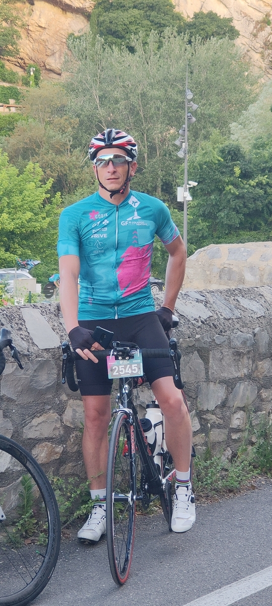 Au final il a mis 9h35 et en décomptant la neutralisation de la descente de la Croix de Fer il met 8h58 et se classe 1637 sur 4302, de plus on citera Jean-Pierre Pernel qui a terminé cette course en 11h08 – 10h26 et se classe 3013, au vu des photos de son frère il a représenté Chavelot en portant le maillot, même s’il n’est plus adhérent à notre club. Merci à lui.