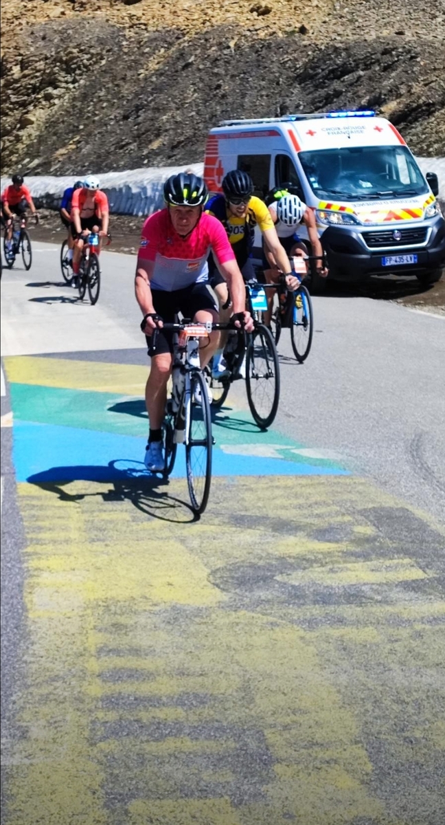 22 juin, Bourg d’Oisans voici notre Francis pour son objectif principal, La Marmotte 177km pour 5000m de dénivelé. Avec comme chez nous une chaleur étouffante !!!!