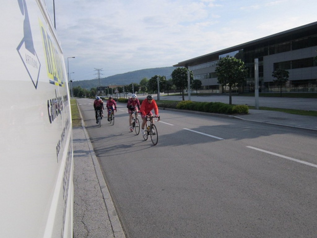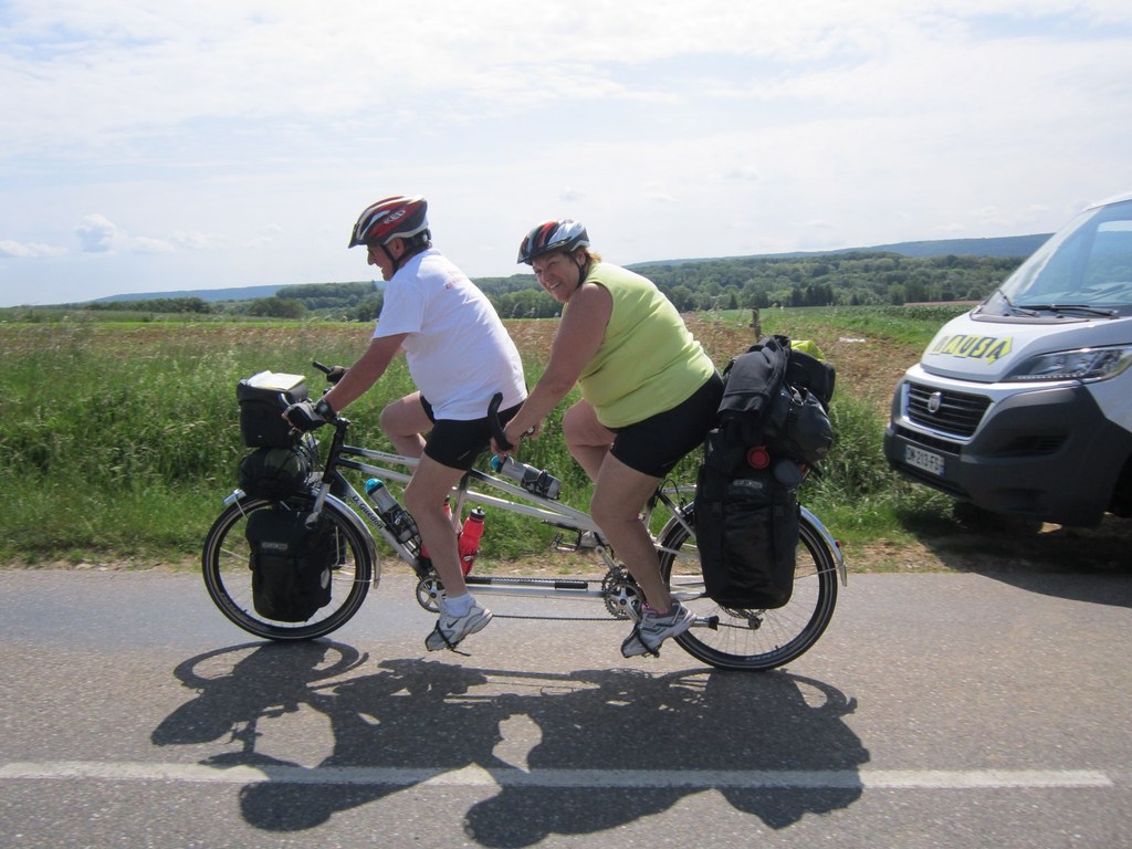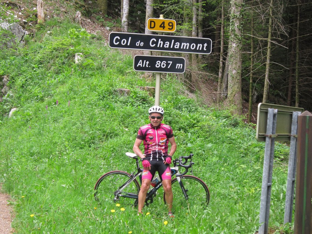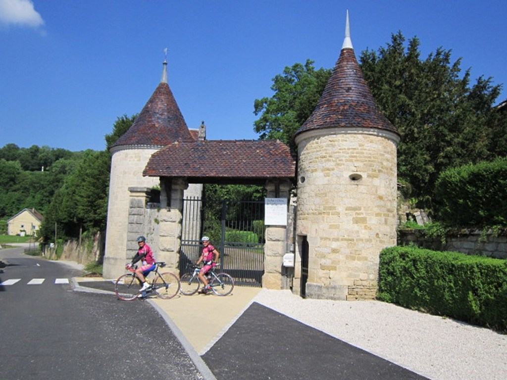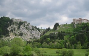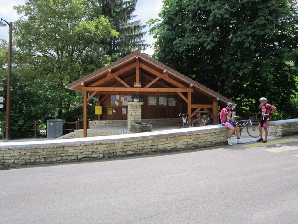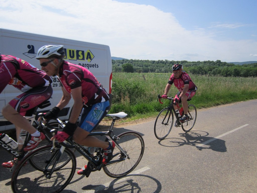 Départ à la fraîche, 7h15 le samedi 23 mai avec une température de 7°C...direction Ornans pour une première étape de 170 km et 1635 m de dénivelé en passant par le col du Mont de Fourche, Faucogney et la Mer. Ensuite Lure où un aimable boucher, cycliste averti, nous indique notre route. Nous prolongeons dans la plaine de la Haute Saône sur Villersexel, département du Doubs, Uzelle où nous faisons la pause méridienne. Un temps de récupération n'est pas pour nous déplaire, puis nous passons à Baume les Dames, et là changement de décor avec les contreforts du massif du Jura. Puis sur le plateau venté nous longeons le camp militaire