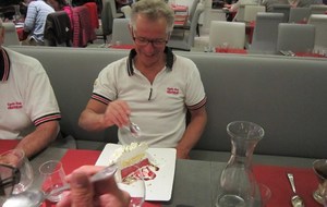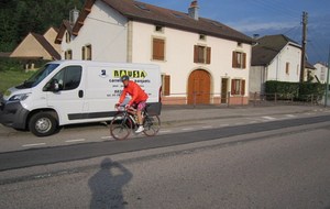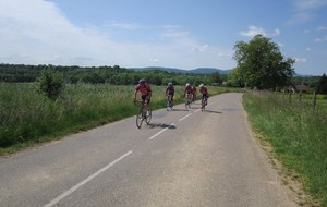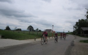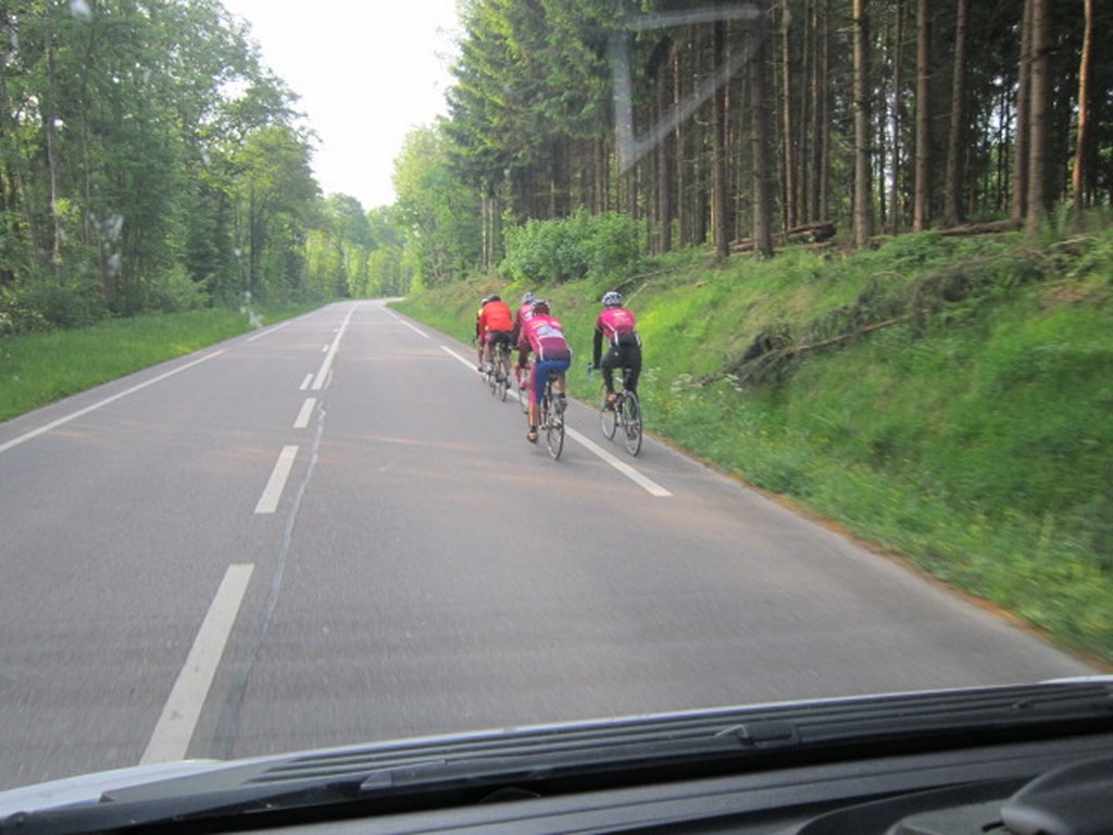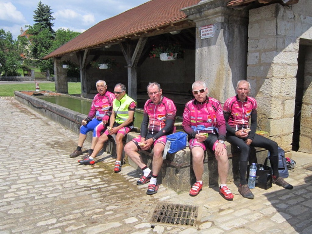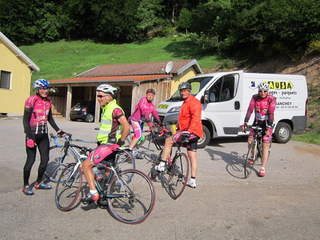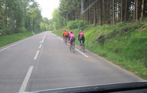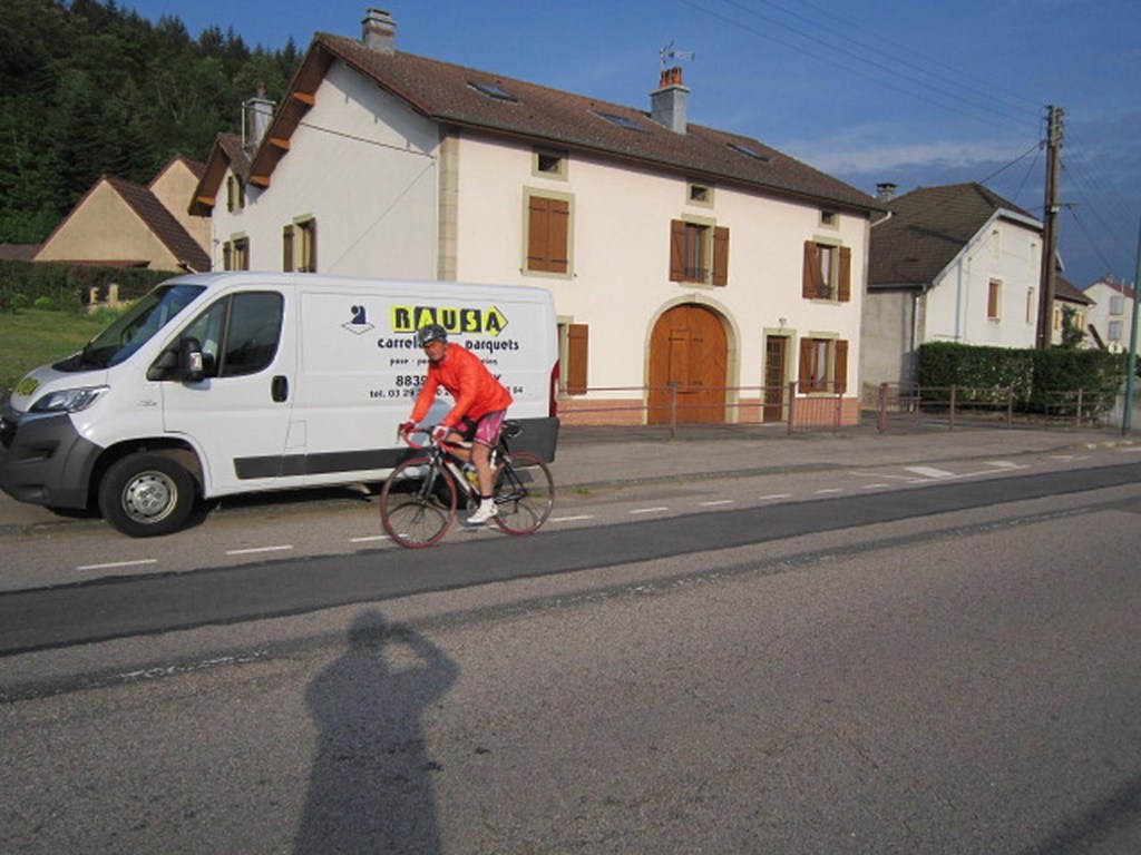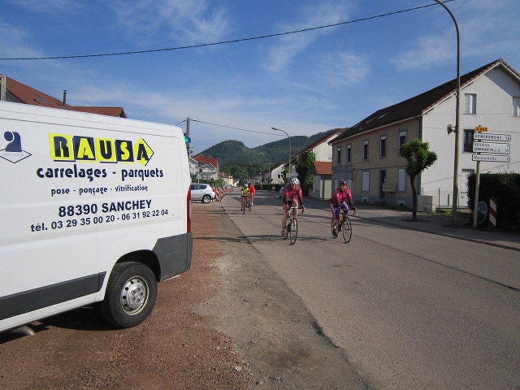 Le lundi 25 mai départ de l'hôtel restaurant à 8h30, le soleil est bien présent pour nous saluer. Nous commençons par ascensionner les ravins du Puits Noir, en passant par l'Hôpital du Groisbois en compagnie de Jean Luc de Besançon qui sera de la partie jusqu'à la traversée du Doubs à Laissey. A partir de ce moment un vent défavorable ne va pas nous quitter jusqu'à notre arrivée. Puis la remontée sur Vesoul avec la pause casse-croûte ensuite Mersuay, Jasney, contournement de Saint Loup/Semouse, Bains les bains nous accueillent avec la pluie et enfin Epinal. La moindre bosse commençait à se ressentir dans les cuisses et les mollets. Une bien belle grosse journée 189 km et 1580 m et pour tous le sentiment du devoir accompli. Nos remerciements à Didier Rausa pour la mise à disposition de son véhicule.