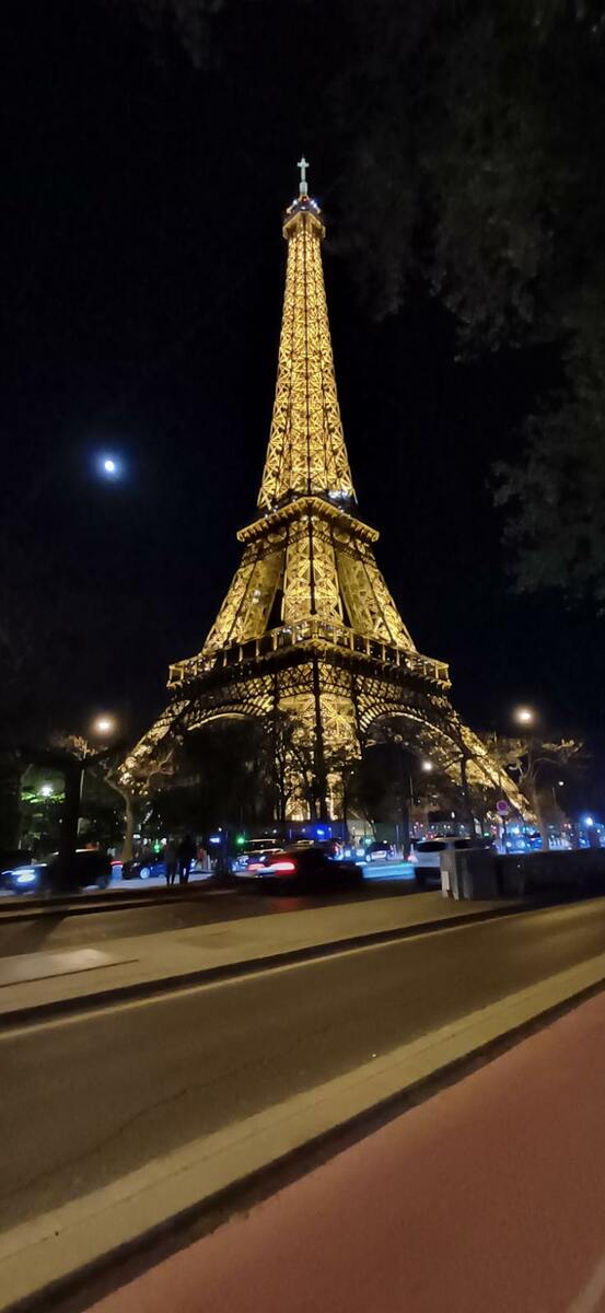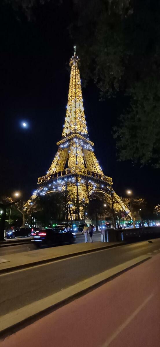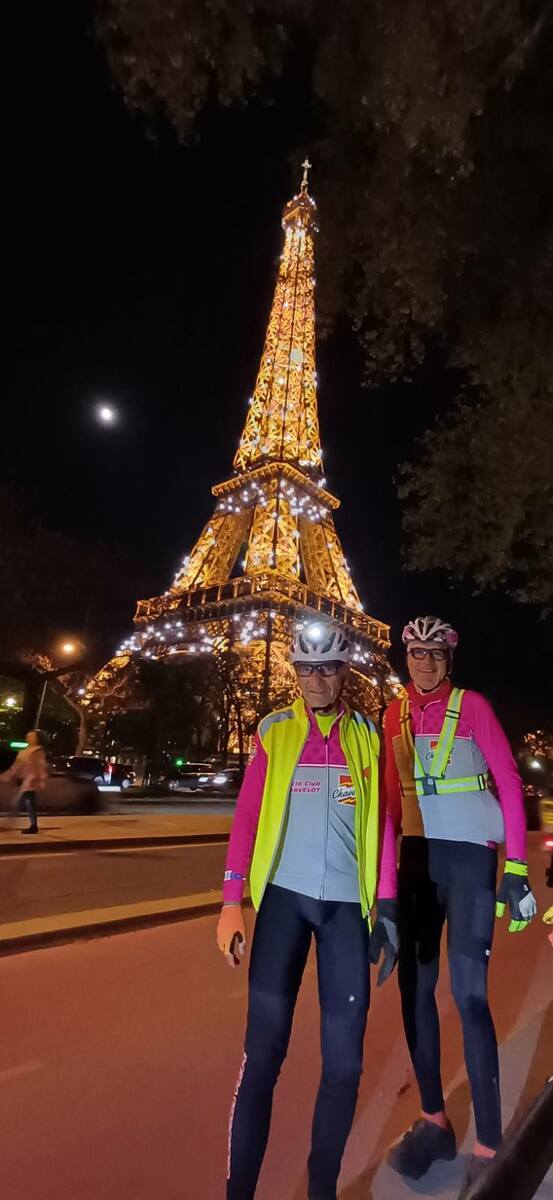 Traversée par la rue de la Paix, la place Vendôme, rue de Rivoli, proche de la Concorde pour une arrivée devant la Tour Eiffel : spectacle grandiose. La vieille dame a revêtu sa magnifique couleur et tous ses scintillements. Franchissement du pont d'Iéna au milieu d'un mariage, puis nous quittons Paris par le bois de Boulogne, un peu animé....